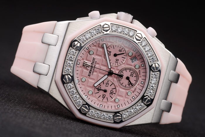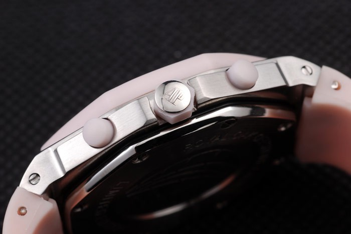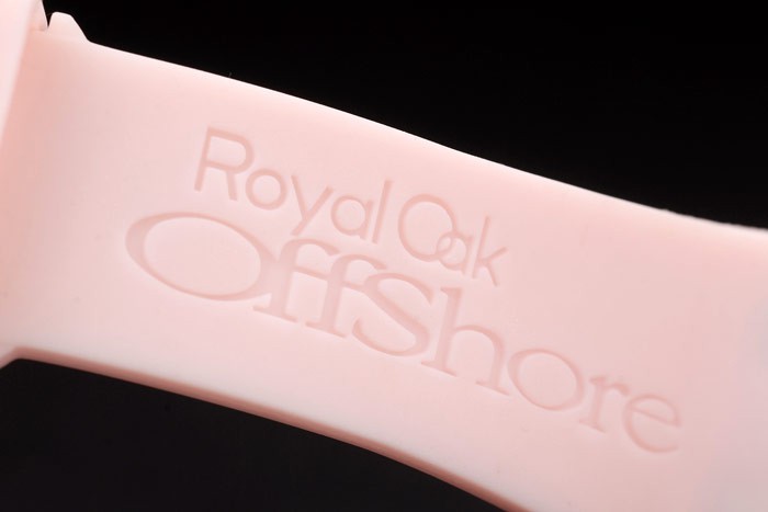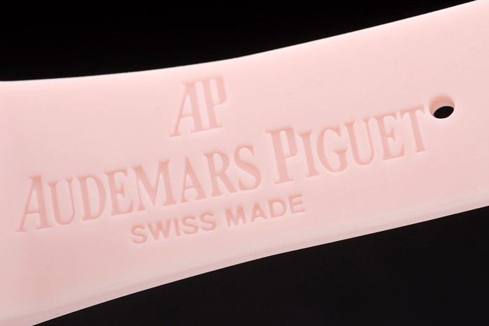 Armbånd: Audemars Piguet Royal Oak Offshore Embossed Pink Gummi Rem med Audemars Piguet Graveret Børstet Rustfrit stål Fold-Illås