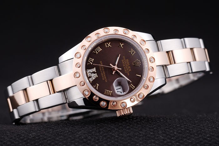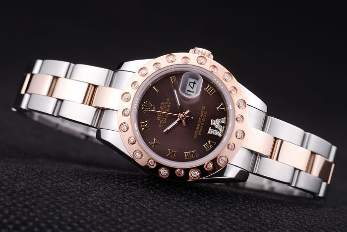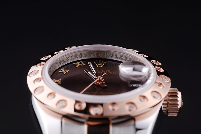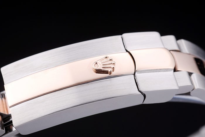 Armbånd: Børstet Rustfrit stål og Rose-Gold Link Armbånd med Rolex Logo Deployment Clasp