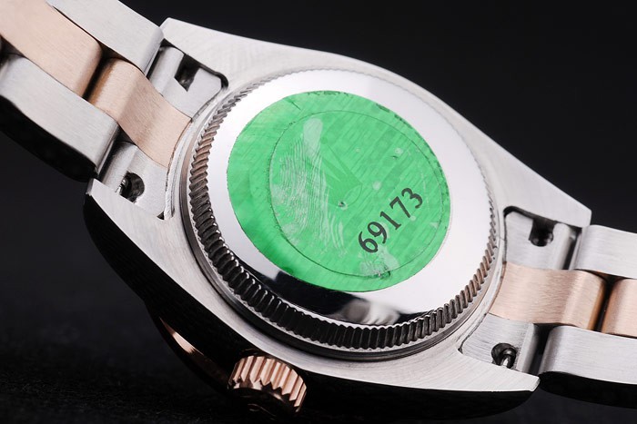 Tilbage: Rustfrit stål Snap-in Tilbage med Green Rolex Authenticity Sticker