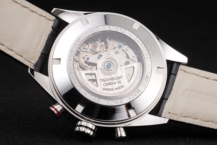 Tilbage: Rustfrit stål Skubbeklædning med mekanik Revealing Transparent Center og Tag Heuer Gravings