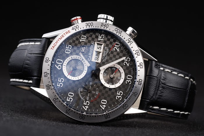 Crown: Poleret rustfrit Stål cutwork krone med sort emaljeret tag Heuer logo plus to ekstra kroner på begge sider