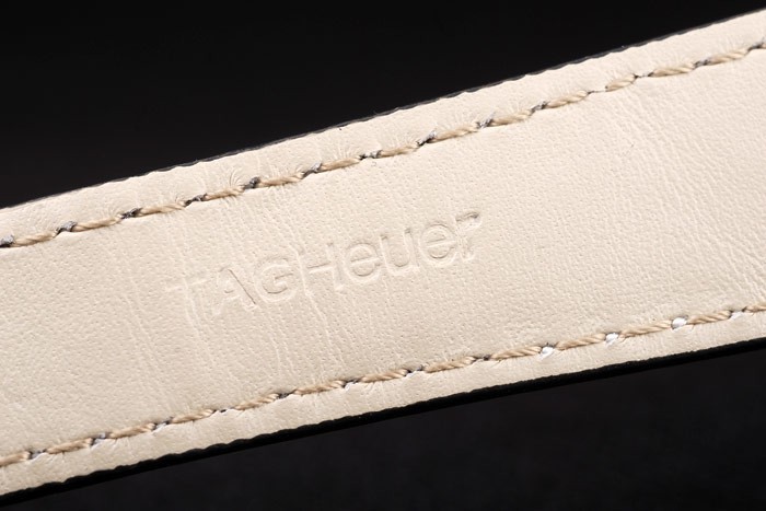 Armbånd: Tag Heuer Heat Præget sort krokodille Læderrem med orange søm og børstet rustfrit stål Push-Button Frigivelse Fold i lås med Tag Heuer Gravering